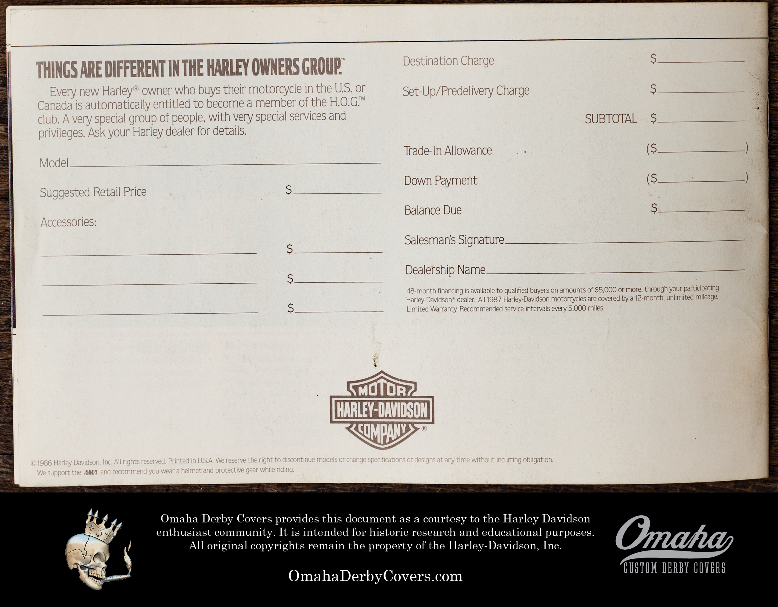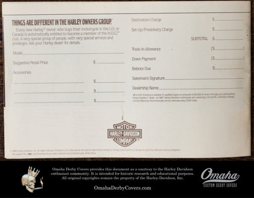 1987 Harley Davidson Full Line Mini Brochure