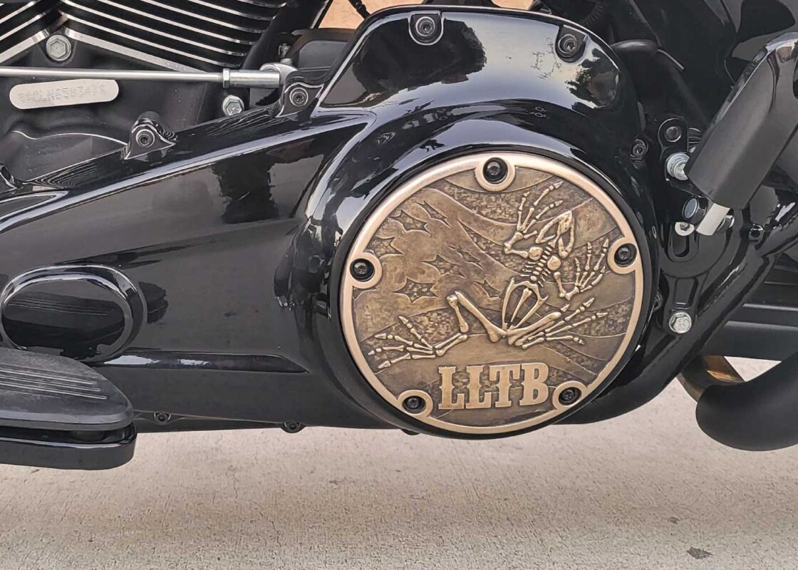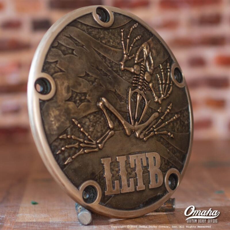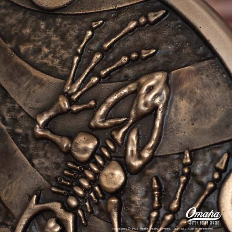 Client in San Diego commissioned this “Bone Frog” custom derby cover to commemorate his career in the US Navy.
