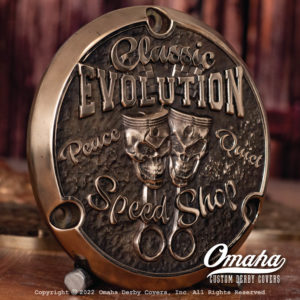 All custom derby covers are made to order. Approximate production lead time is eight to twelve weeks, but is not guaranteed. If you have a situation (an upcoming ride, an event, etc) that means you need it sooner, please contact me first and I will see what I can do. Please understand that I really do make these by hand in my own shop. Bronze art casting will always have a certain failure rate, and I will not ship a custom derby cover I am not proud of.