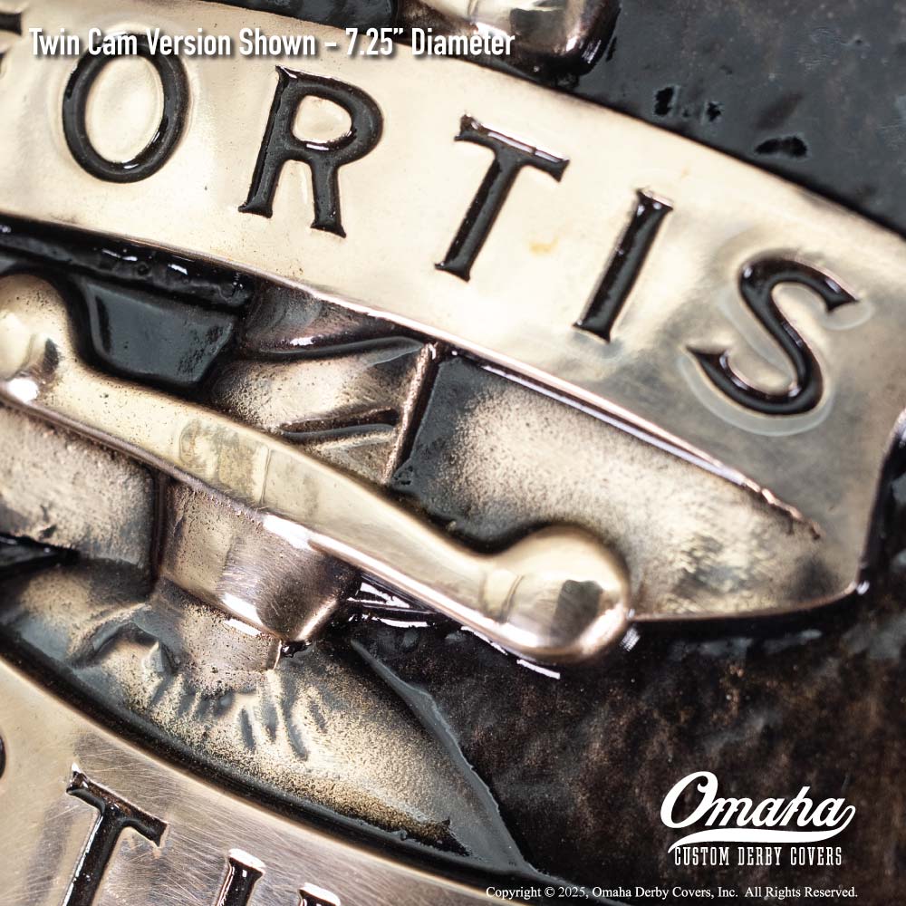 All custom derby covers are made to order. Approximate production lead time is eight to twelve weeks, but is not guaranteed. If you have a situation (an upcoming ride, an event, etc) that means you need it sooner, please contact me first and I will see what I can do. Please understand that I really do make these by hand in my own shop. Bronze art casting will always have a certain failure rate, and I will not ship a custom derby cover I am not proud of.