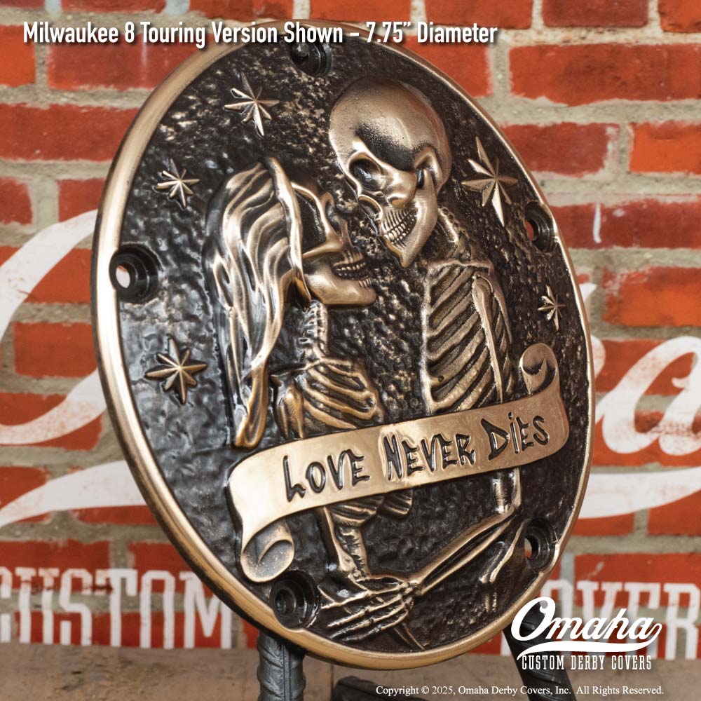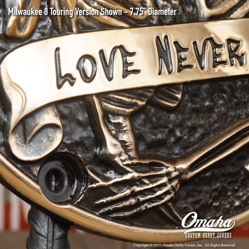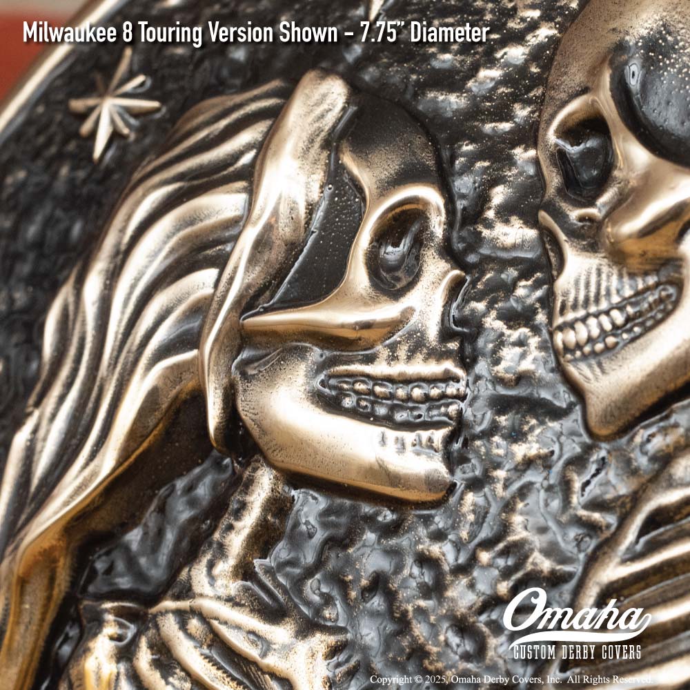 All custom derby covers are made to order. Approximate production lead time is eight to twelve weeks, but is not guaranteed. If you have a situation (an upcoming ride, an event, etc) that means you need it sooner, please contact me first and I will see what I can do. Please understand that I really do make these by hand in my own shop. Bronze art casting will always have a certain failure rate, and I will not ship a custom derby cover I am not proud of.